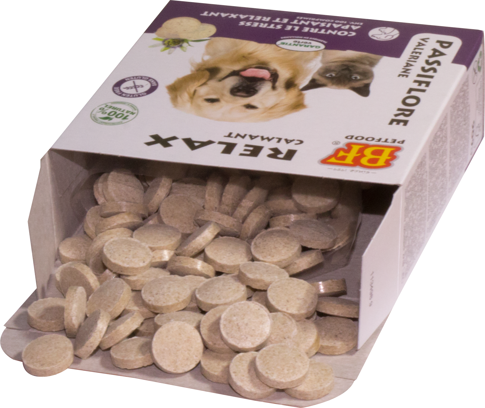 - smaakvolle koudgeperste Relax gisttabletten voor alle honden- en kattenrassen.
